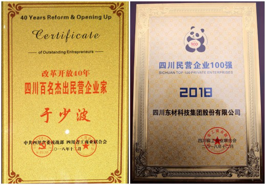 熱烈祝賀東材科技黨委書記、董事長(zhǎng)于少波榮獲“改革開放40年四川百名杰出民營(yíng)企業(yè)家”光榮稱號(hào)