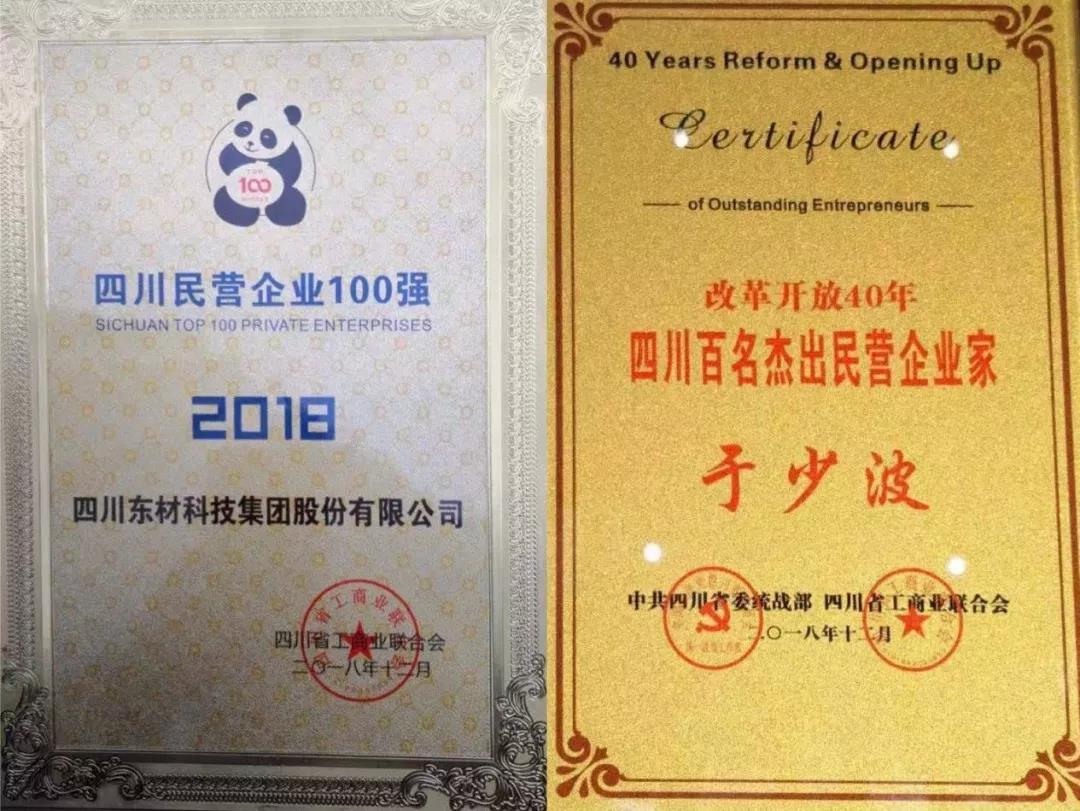 熱烈祝賀東材科技黨委書(shū)記、董事長(zhǎng)于少波榮獲“改革開(kāi)放40年四川百名杰出民營(yíng)企業(yè)家”光榮稱(chēng)號(hào)
