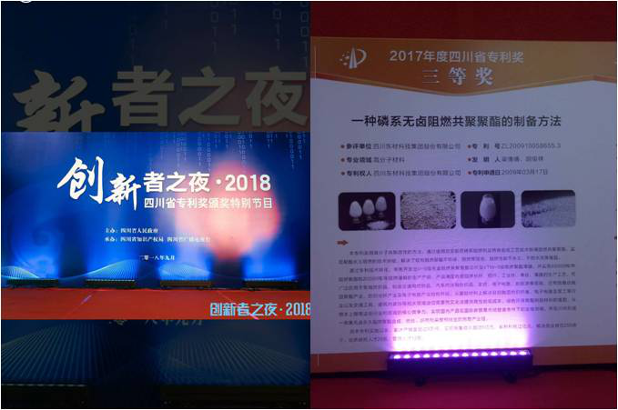 國(guó)家發(fā)明專(zhuān)利“一種磷系無(wú)鹵阻燃共聚聚酯的制備方法”獲四川省專(zhuān)利三等獎(jiǎng)