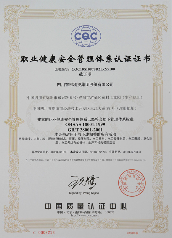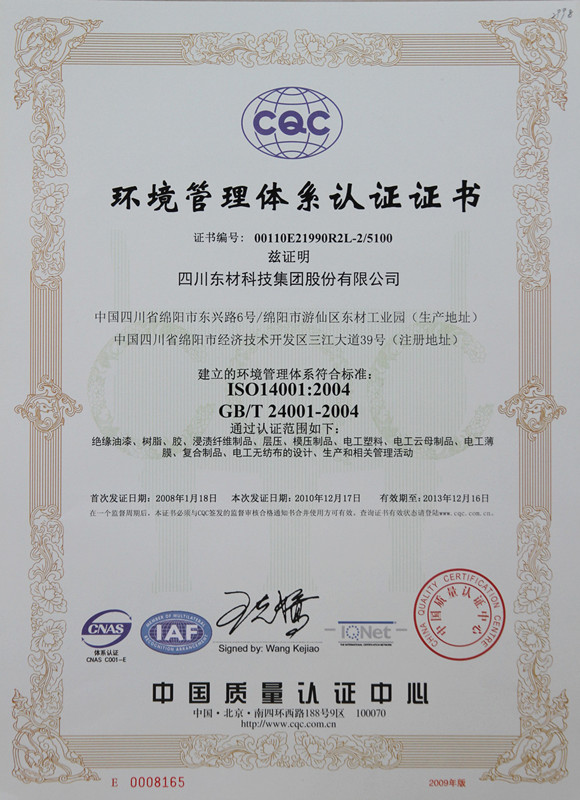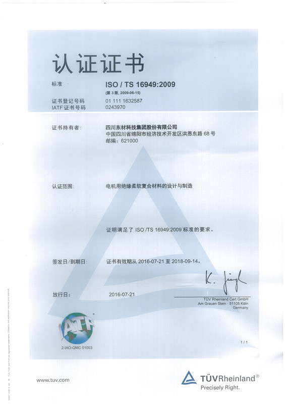 東材科技在國(guó)內(nèi)同行業(yè)企業(yè)當(dāng)中率先通過(guò)國(guó)際ISO9001的質(zhì)量體系認(rèn)證,通過(guò)ISO10012國(guó)際計(jì)量體系、ISO14001環(huán)境管理認(rèn)證體系、OHSAS18001職業(yè)健康安全體系、GBT 29490知識(shí)產(chǎn)權(quán)管理體系、GBT23331能源管理體系認(rèn)證企業(yè)、IATF16949汽車(chē)質(zhì)量管理體系認(rèn)證,不僅使公司產(chǎn)品質(zhì)量保障體系達(dá)到國(guó)際化的新標(biāo)準(zhǔn),而且為產(chǎn)品質(zhì)量的穩(wěn)定提供了強(qiáng)有力的保障。